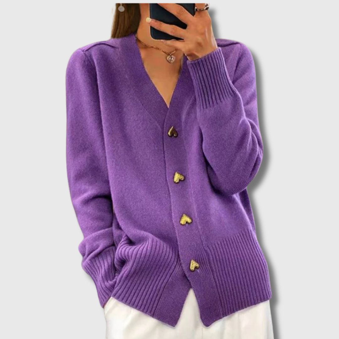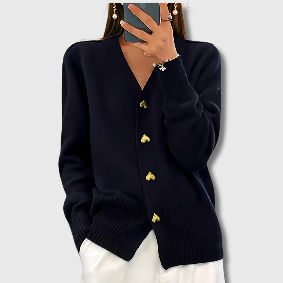 No more cardigans that feel frumpy or shapeless. Annie gives you the warmth you need on cold days while keeping your look refined and effortless. Its soft knit feels cosy without bulk, and the classic buttoned cut makes it a piece you can trust for work, outings, or simply relaxing at home. A timeless layer that works with everything in your wardrobe.