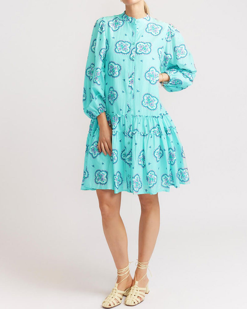 Geplooide jurk met cropped mouwen en print Write a Review