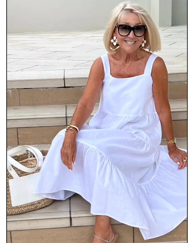 Gestapelde linnen mouwloze boho-jurk