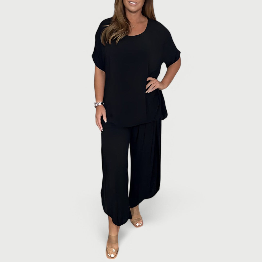 Crafted from soft, lightweight, and breathable fabric, this set allows air to flow freely, keeping you cool and comfortable all day long. Whether you're lounging at home, running errands, or stepping out in style, the Lucia Set seamlessly blends relaxation with refined fashion.